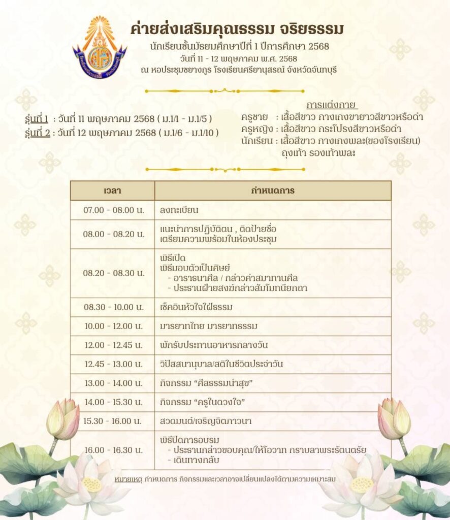 ค่ายคุณธรรม ม.1 และ ม.4 ปีการศึกษา2568