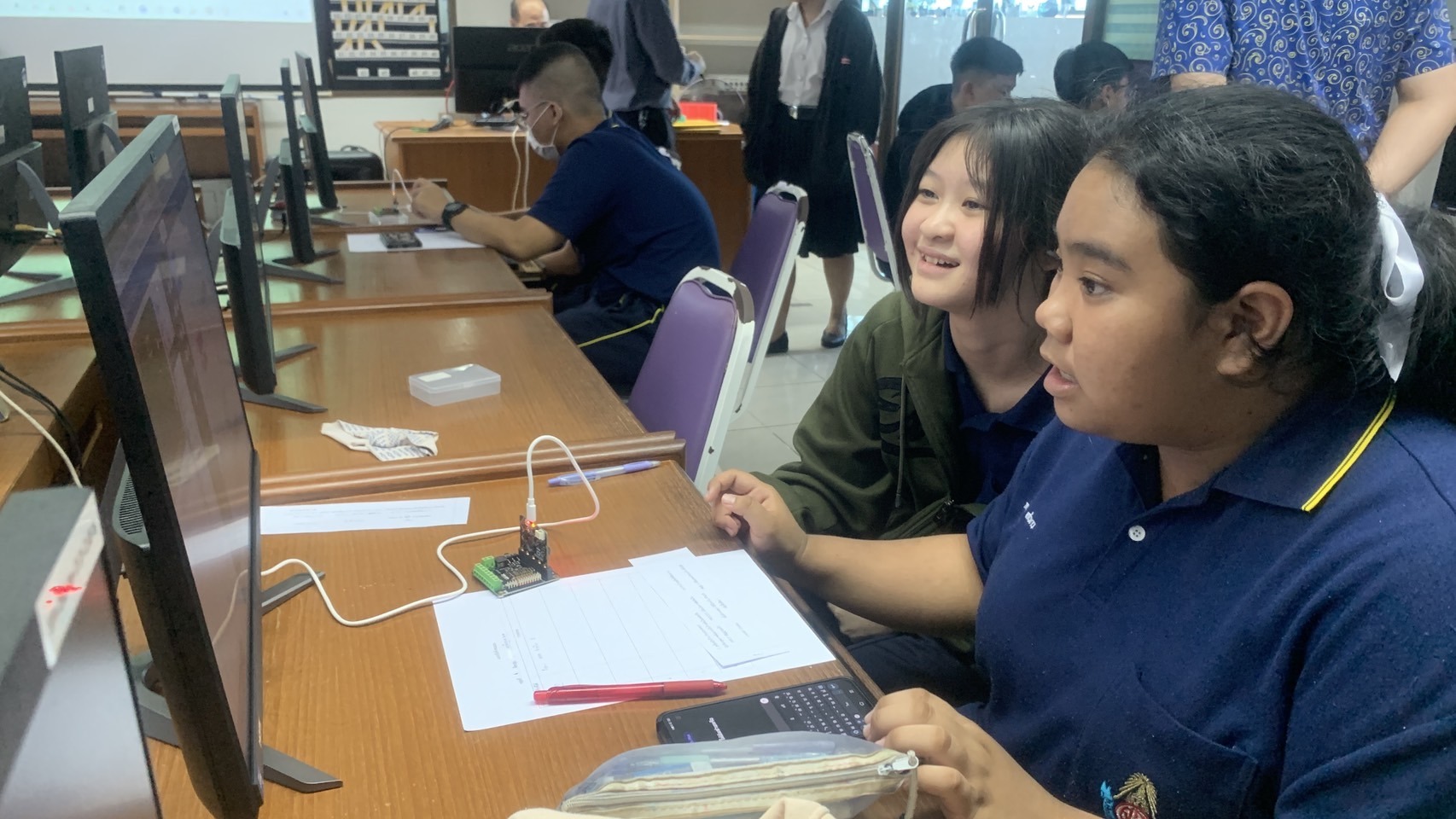 การแข่งขันประเภททีม โดยมีนักเรียนระดับมัธยมศึกษาตอนต้นและตอนปลายเข้าร่วมอย่างคึกคัก ซึ่งแต่ละทีมได้แสดงผลงานที่ใช้ความรู้ด้าน Coding และการออกแบบวงจรอิเล็กทรอนิกส์อย่างน่าสนใจ