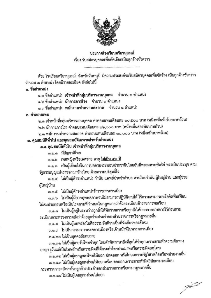 ประกาศรับสมัครบุคคลเพื่อคัดเลือกเป็นลูกจ้างชั่วคราว