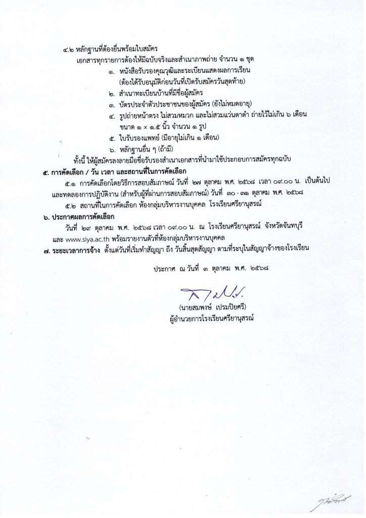ประกาศรับสมัครบุคคลเพื่อคัดเลือกเป็นลูกจ้างชั่วคราว (ครูผู้สอนชาวต่างชาติ)