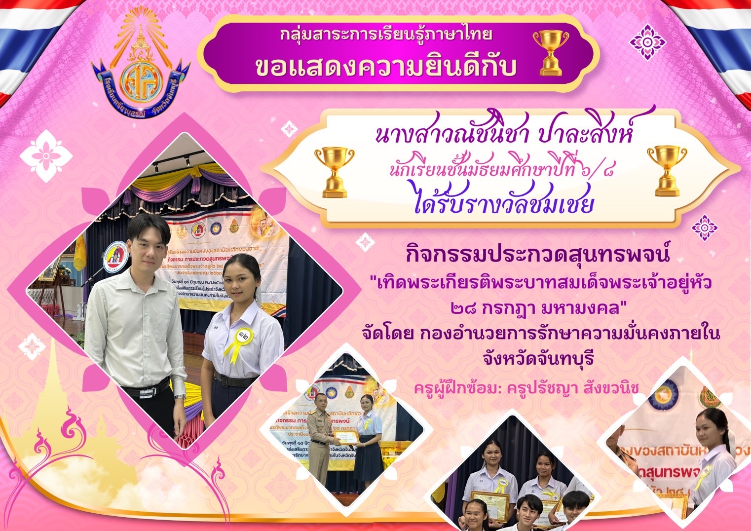 ขอแสดงความยินดีกับเด็กหญิงภัทรวดี สุวรรณโชติ