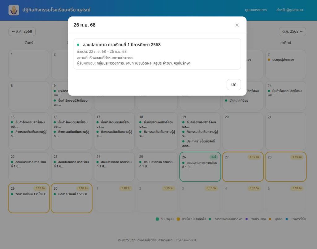 ปฏิทินวิชาการ รร.ศรียานุสรณ์